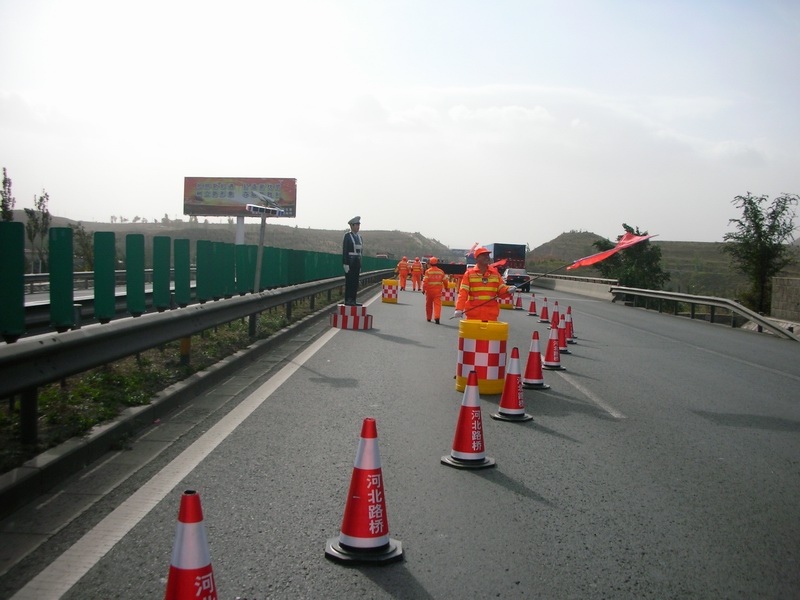 為切實(shí)做好京張高速公路2009-2010年中修罩面工程,真正實(shí)現(xiàn)工程組織管理嚴(yán)密、現(xiàn)場安全從嚴(yán)把關(guān)、工程質(zhì)量細(xì)摳嚴(yán)控的目的,提前掌握好有利于施工現(xiàn)場交通安全控制的一系列相關(guān)數(shù)據(jù),10月16日上午,公司副總經(jīng)理葉成海帶領(lǐng)路面專項(xiàng)工程部全體人員,組織進(jìn)行了由施工單位、監(jiān)理單位、高速交警、路政支隊(duì)等五家單位參加的交通管制現(xiàn)場演練。
