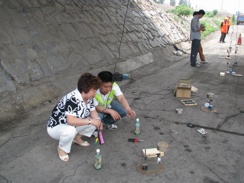 由于荷載試驗必須用標準重量的汽車進行加載才能測得詳細準確的數(shù)據(jù),需在檢測期間斷交。為此公司與下花園交通局、交警隊聯(lián)系溝通,得到他們的大力配合,檢測時間安排在車流量較小的中午進行。