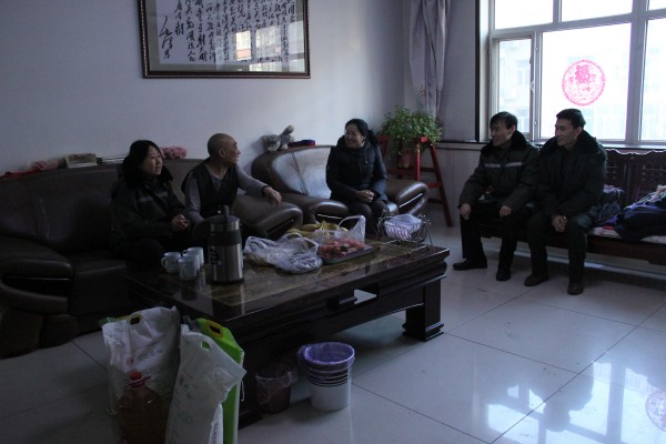 1月19日,沙城收費站黨支部書記張麗芝帶領部分黨員代表,冒著嚴寒來到困難老黨員袁世江的家中,進行走訪慰問,并送來了慰問品及節(jié)日的祝福。