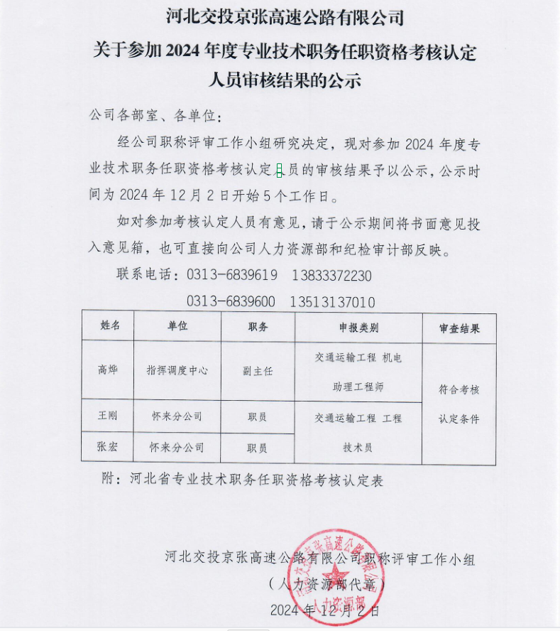 關(guān)于參加2024年度專業(yè)技術(shù)職務(wù)任職資格考核認定人員審核結(jié)果的公示