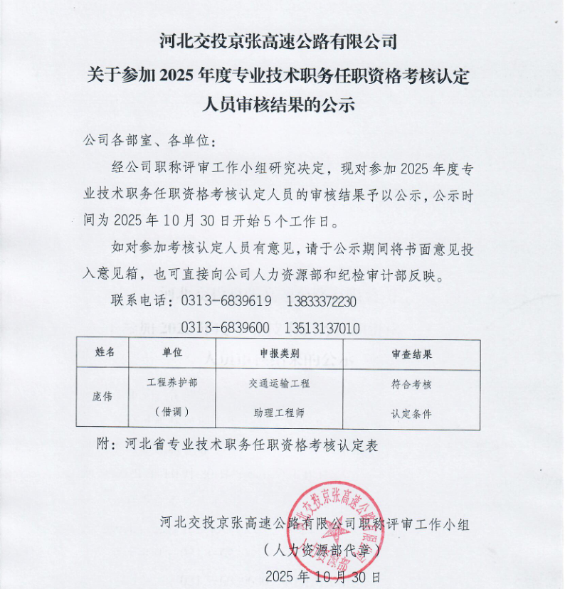 關(guān)于參加2025年度專(zhuān)業(yè)技術(shù)職務(wù)任職資格考核認(rèn)定人員審核結(jié)果的公示