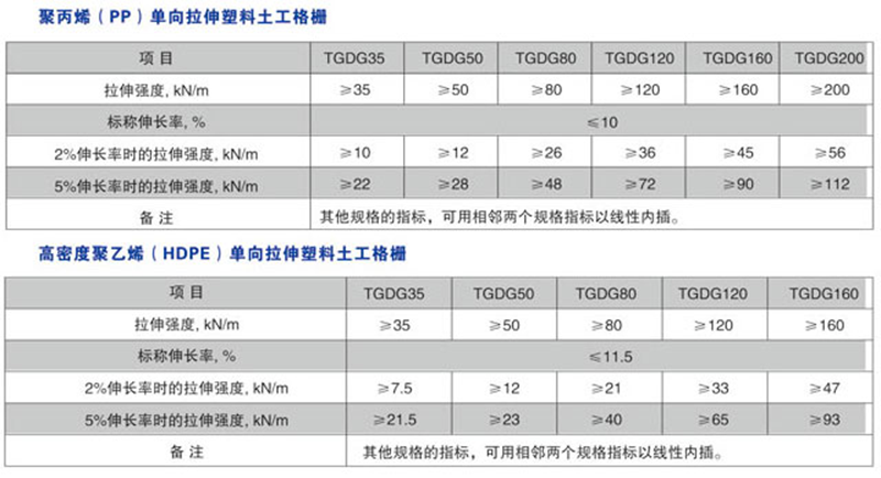 6、擋土墻和橋臺(tái)屬于受力結(jié)構(gòu)體,承擔(dān)外部所有荷載:主動(dòng)土壓力、結(jié)構(gòu)體上部的動(dòng)載、溫度應(yīng)力等,加筋材料長(zhǎng)期處于較大的張力作用下,以及動(dòng)載的反復(fù)作用下,材料的分子結(jié)構(gòu)產(chǎn)生疲勞,其性能發(fā)生衰減,加速格柵的老化。為避免結(jié)構(gòu)因加筋材料的蠕變而產(chǎn)生較大變形,應(yīng)選擇以高密度聚乙烯(HDPE)為原料的單向塑料土工格柵。
