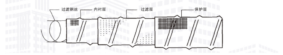 透水管是以防銹彈簧圈支撐管體,形成高抗壓軟式結(jié)構(gòu),無(wú)紡布內(nèi)襯過(guò)濾,使泥砂雜質(zhì)不能進(jìn)入管內(nèi),從而達(dá)到凈滲水的功能。滌綸絲外繞祉覆層具有優(yōu)良吸水性,能迅速收集土體中多余水份。橡膠筋使管壁被覆層與彈簧鋼圈管體成為有機(jī)一體,具有很好的全方位透水功能,滲透水順利滲入管內(nèi),而泥砂雜質(zhì)被阻擋在管外,從而達(dá)到透水、過(guò)濾、排水之目的。